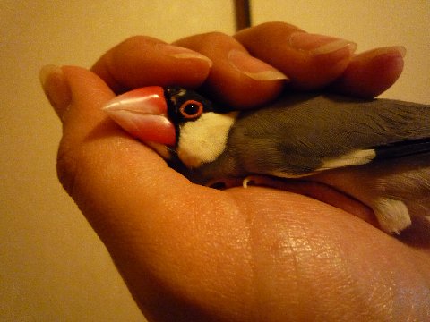 文鳥を握ってると温かくて、どうしても眠くなってしまうんですよね。。。