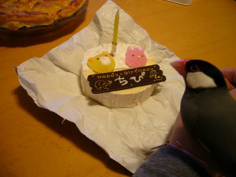 バースデーケーキ、といってもちびは食べられないので、チーズがケーキ代わりです。