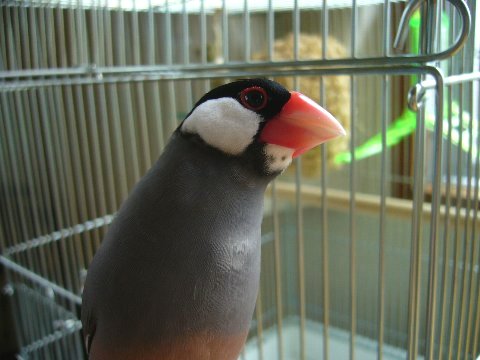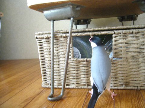 今日はここね。 ここはちびのご飯(シードやボレー)が入れてあります。 僕のご飯、異常なし! 食べたいなー じーっと見てます。真剣です。