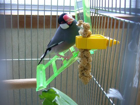 毎日仕事から帰るとちびはここでポツリとしてます。 ←ここ 朝起きたときもここなので、どうやら寝るところのよう。。。 他に場所はたくさんあるし、そもそもソコは粟穂を挟むところだよ、ちびくん。 ぼくはここが好きなんだ。