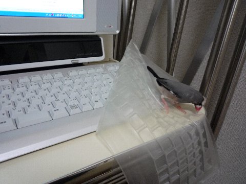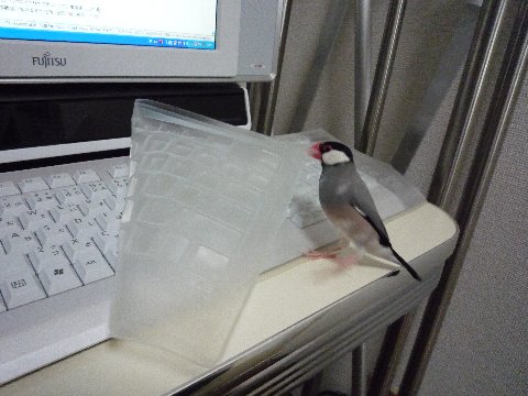 換羽中なので放鳥中も比較的おとなしめのちび先生。