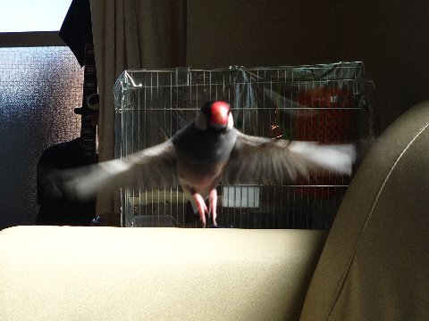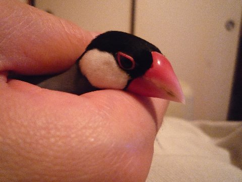 昼間は何かと悪さばっかりしている、とんがり文鳥のちびですが、