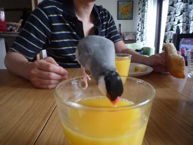 うちは家族みんなオレンジジュースが大好きです もちろん彼も。。。 うま こっちもうま ふ~