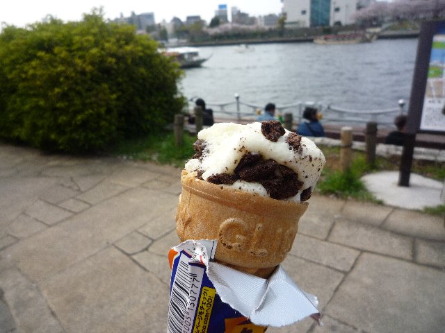 なぜか、桜(というより川)を見ながらカプリコを1本食べて帰ってきました。