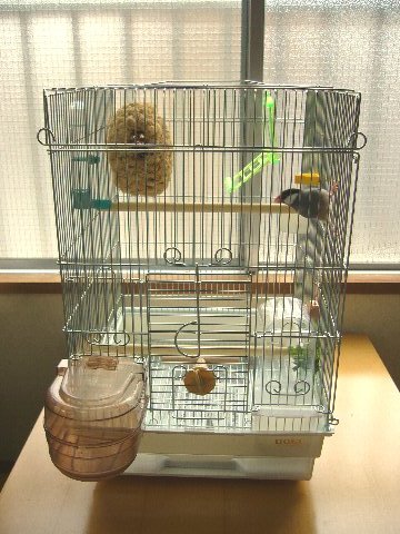ネットで買ったちびのお家が届きました。 さっそくお引越しです。 いままでの住居 新居 ・・・ちょっと大きいかなぁ。 エサ入れが明らかに文鳥サイズじゃない。 まぁ、ノビノビし放題だし。。。 ちびをうちにお迎えして8ヶ月を過ぎましたが、実はお引越しはコレで3回目。 しょっちゅう環境が変わって落ち着けないのもかわいそうなので、 お家はこのケージで定着しようかと思っています。 落ち着かないよー